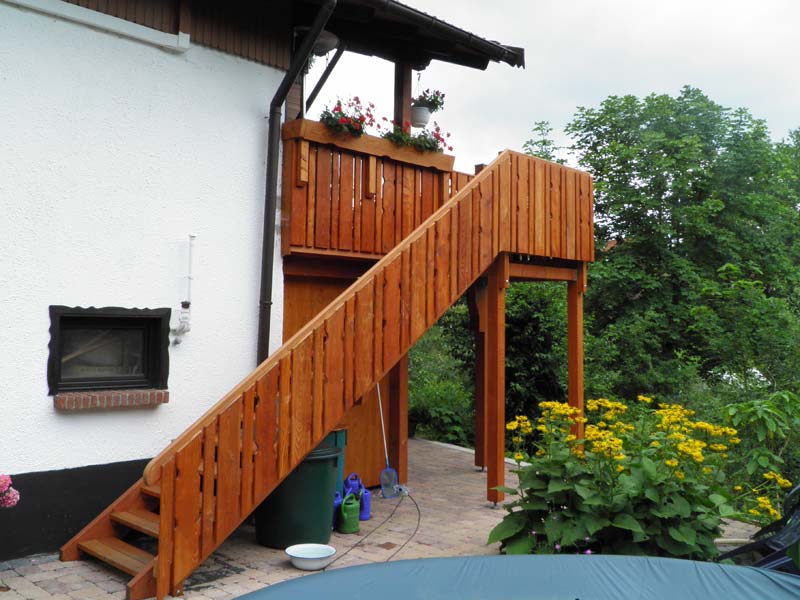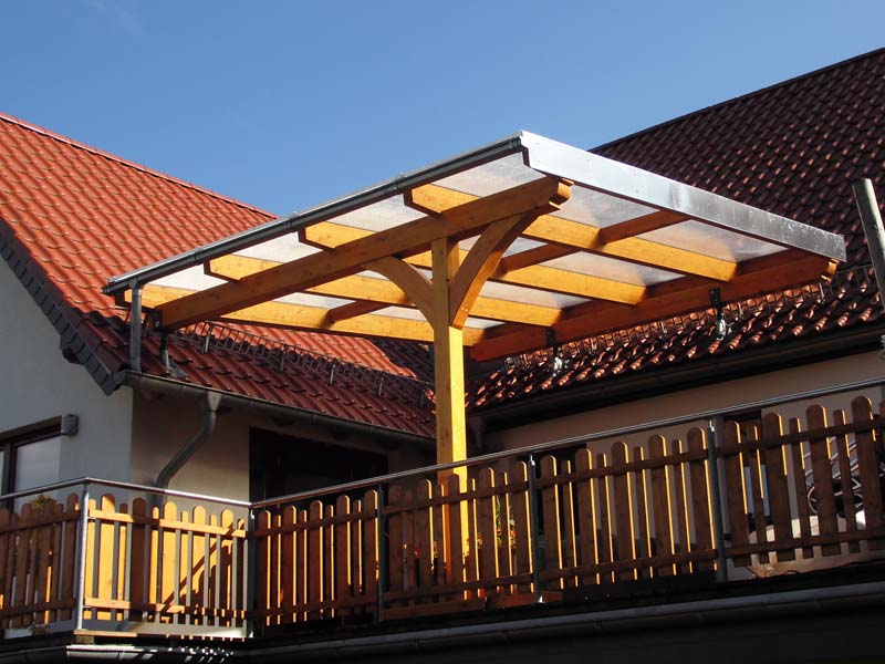 Auch eine Auflage auf eine bestehende Terrassen- oder Gartenmauer ist jederzeit möglich. Farblich können wir Ihnen nahezu jeden Wunsch erfüllen. Die Überdachung eignet sich auch für Kellertreppen oder für Balkone.