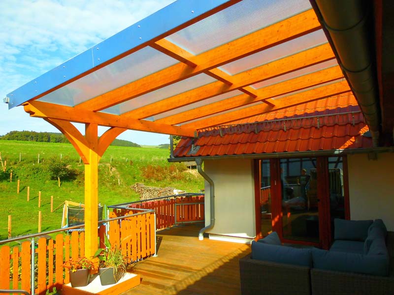 Eine Terrassenüberdachung lässt sich in bestehende Bausubstanz integrieren oder aber auch als eigenständige Konstruktion verwirklichen.